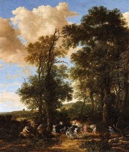 A Wooded Landscape With Tobias And The Angel Before A Cottage