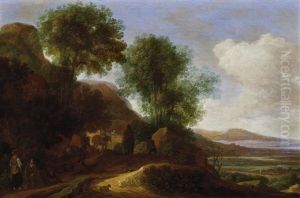 A Wooded Landscape With Peasants On A Path And Herdsman With Their Cattle
