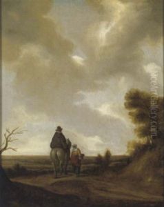 A Dune Landscape With Three Peasants Discoursing Beside A Wooden Fence