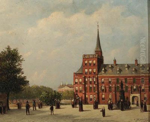 Elegant Figures Strolling Along The Buitenhof, The Hague