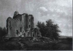 Landschaft Mit Einer Ruine Und Einer Schafherde