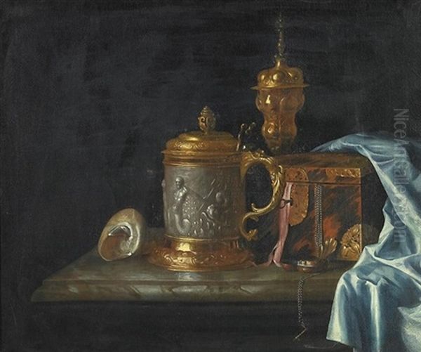 Variastilleben Mit Deckelkrug, Pokal, Schmuckkassette Und Einer Muschel