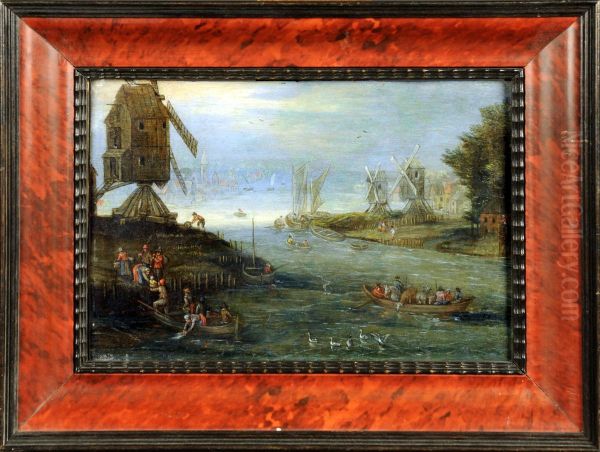 Paysage Fluvial Anime, Avec Moulin