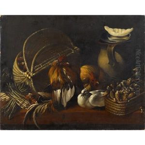 Nature Morte Au Panier De Fruits Et Fleurs Sur Un Entablement