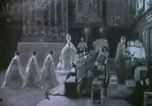 A Nightime Interior Of A Cathedral With A Priest Celebratingmass