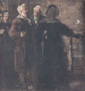 An Interior With Two Gentlemen Conversing With A Lady
