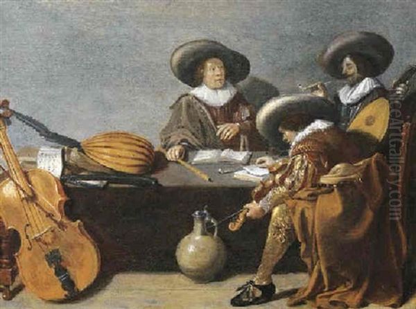 Officers Smoking And Music-making In An Interior