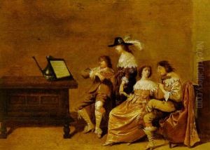 The Five Senses: Peasants Drinking, Smoking And Singing In An Interior