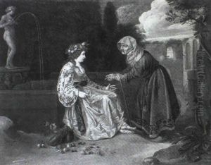 A Woman Seated Peeling A Lemon By A Table With A Dog In A Panelled Room