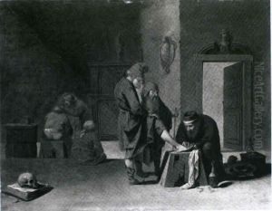 Peasants Smoking And Drinking In An Interior Before A Woman Nursing Her Sleeping Children
