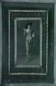 Portrait Of A Cavalier, Standing Full Length With A Plumed Hat And Cane