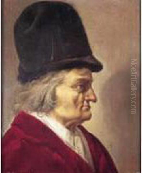 Portrait D'homme En Habit Rouge Et Au Chapeau De Fourrure