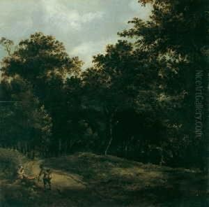 A River Landscape With Horsemen Resting Beside A Waterfall