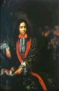 Portrait Of A Gentleman Standing On A Balcony In A Satin Brocade Japansche Rok, Lace Jabot And Wig