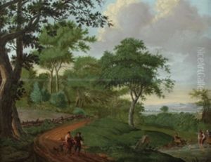 Bewaldete Landschaft Mit Reisenden Auf Einem Weg