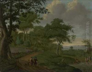Wooded Landscapewith Travellers On A Pathway