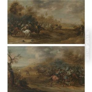 Combat De Cavalerie (+ Another, Similar; Pair)