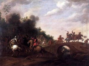A Calvary Skirmish On The Outskirts Of A Wood By A Bridge