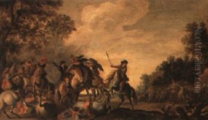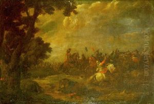 A Cavalry Skirmish In A Wooded Landscape