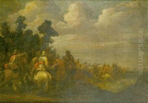 Landscape With Elegant Figures Riding, A Coach Party Beyond