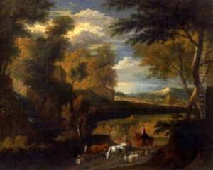 An Italianate Landscape With A Herdsman Watering His Livestock