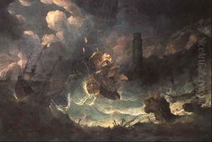 Men-o-war And Other Shipping Foundering Off A Rocky Coast