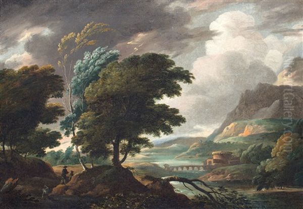 Italianiserend Landschap Met Onweerslucht En Bliksem