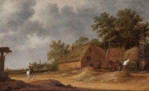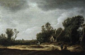 Paysans Sur Un Chemin Devant Une Chaumiere