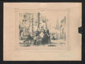 Scene De Marche Aux Poissons Devant Une Ville Flamande