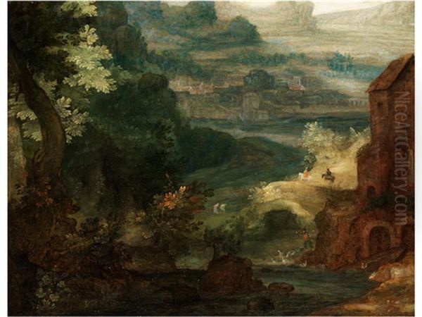 Baumlandschaft Mit Flusstal, Ruine Und Figurenstaffage