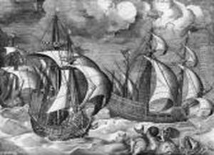 Three Men Of War In A Tempest, Sailing To Right (hollstein 105; Lebeer 48)