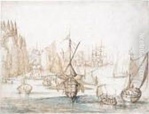 Ships At Anchor Off A Mountainous Coastline