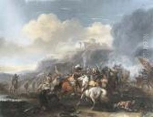 Schlachtenszene Vor Tiefer Landschaft Und Festung