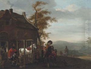 A Horse Stalling With A Peasant Loading A Cart In A Landscape