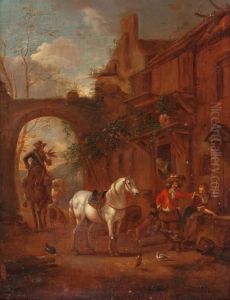 Horseman Departing A Country Cottage With Figures