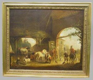 A Landscape With Travellers Unloading Their Wagon Near A Barn