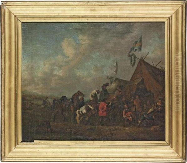 Cavalrymen At A Sutler's Tent, A Dune Landscape Beyond