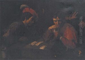 Peasants Playing Cards By A White Horse