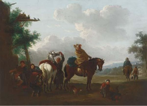 Travellers At Halt By A Blacksmith's Cottage