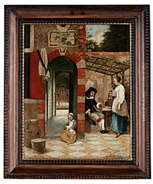 Figurer Pa Taverna, Delft Oil Painting by Pieter De Hooch