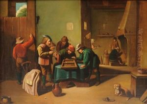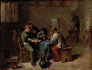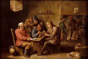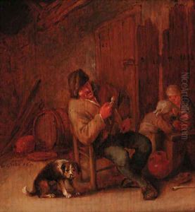 Tavern Scene, with Serving-wench, Gentleman with Pipe and Dog and Card Players