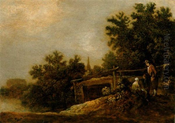 Paysans Conversant Au Bord D'une Riviere