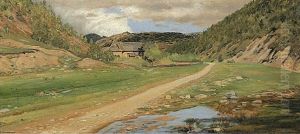 Bewaldete Landschaft Mit Bauernhaus.
