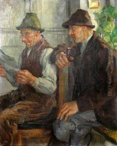 Landschaft Mit Bauern An Einem Brunnen