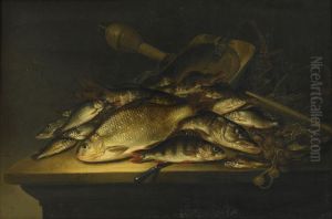 Still Life With Fish, Nets, Fishing Equipment And A Knife On A Table
