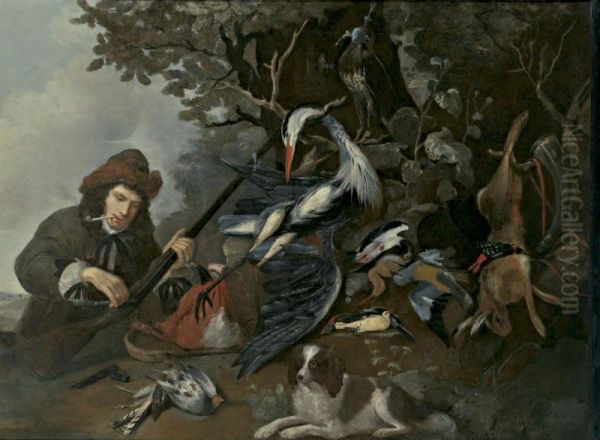 Still Life Of Game And A Hunter In A Landscape
