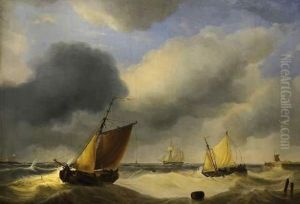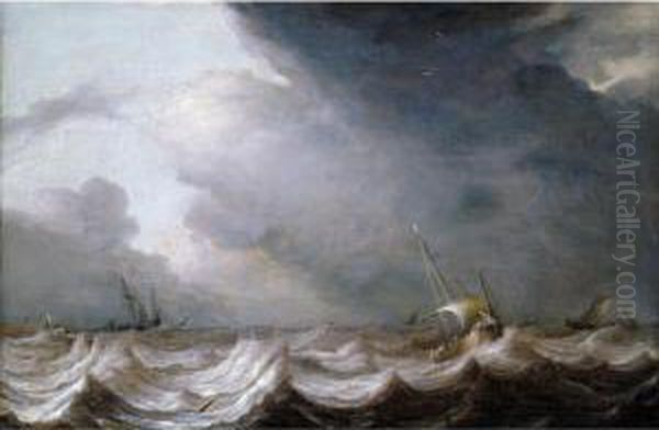 Dutch Fishing Pinks And Other Small Vessels At Sea In Stormy Weather