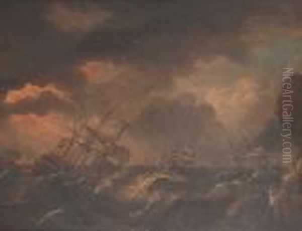 Men 'o' War And Other Shipping In A Squall Off A Rocky Coastline