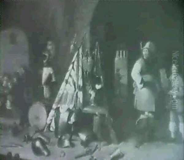 A Still Life Of Militaria In A Barrackroom With A Soldier Looking On