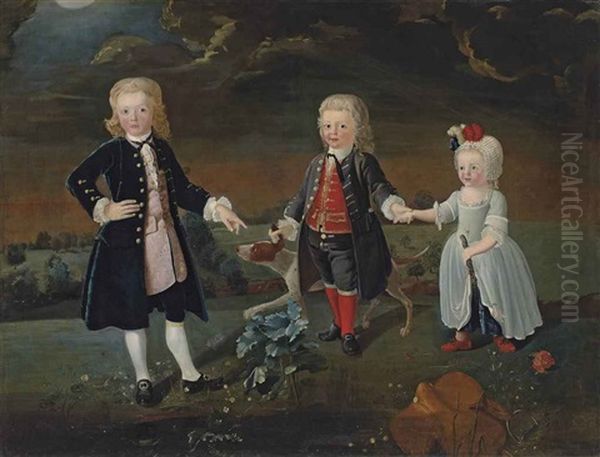 Group Portrait Of Daniel, William And Stephen Eaton, As Children, Full-length, With A Dog, In An Extensive Park Landscape